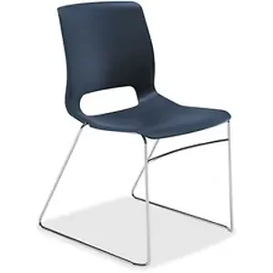 Part of the Motivate seating collection by HON, these sled-base stacking chairs can transform any space into a dynamic environment. The Motivate collection includes tables and seating that work together seamlessly to provide a comprehensive solution perfectly suited for any collaborative environment. The way people work is constantly evolving, and Motivate provides the comfort, flexibility, technology and quality they need to get things done. Sculpted for incredible comfort, the high-density plastic shell back and seat of these mobile stack chairs are contoured to conform to your body and move with your body to reduce pressure points. Weight capacity is 300 lb. One-piece propylene can be easily wiped down. Shell color is Regatta, and frame color is silver. Chairs with no arms stack up to 12 high on the floor to maximize your space or 40 high on specially designed cart (sold separately). Efficient footprint and versatile design deliver comfort and adaptability.
