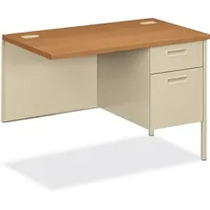 Part of the HON Metro Classic Series, this right return is a practical and professional desk solution that is ideal for business and government offices and attaches to the single-pedestal desk in the same series. Durable, high-performance construction stands up to rigorous daily use. Design also features a box/file pedestal. High-sided file drawers accept hanging files without hangrails. 3/4-extension box drawers have one divider and spring-loaded, follower blocks. "Tru-fit" mitered drawer fronts offer better visual alignment. Reinforced, double "O" frame inner structure keeps desk solid and sturdy for years of use. Keyed-alike cores must be ordered separately. Color of pulls and grommets matches paint selection. All interior drawer bodies are made of painted steel.