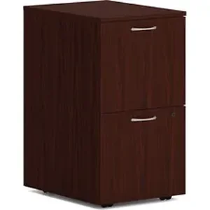 This 15" wide mobile pedestal is part of the HON Mod Desk Collection that delivers simplicity and adaptability to enhance your productivity. The contemporary design feels perfectly at home in either a private office or an open floor plan. Mobile pedestal increases the storage capacity of your Mod workstation. Two file drawers are equipped with standard hangrails to hold either letter-size or legal-size hanging files. Drawers open fully to give easy access to all contents. Steel ball-bearing, drawer suspensions operate easily and quietly. Durable, Mahogany laminate is scratch-resistant, spill-resistant and stain-resistant. Mahogany matches other Mod elements (sold separately) so you can create an office suite to fit your needs.