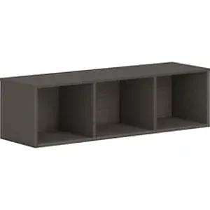 This wall-mounted storage is part of the HON Mod Desk Collection that delivers simplicity and adaptability to enhance your productivity. The contemporary design feels perfectly at home in either a private office or an open floor plan. The 48" wide Mod storage cabinet mounts on the wall to add storage space without sacrificing floor space. Its open interior offers several cubic feet of storage space. Optional doors (sold separately) can be added to increase privacy. Durable, Slate Teak laminate is scratch-resistant, spill-resistant and stain-resistant. Slate Teak matches other Mod elements (sold separately) so you can create an office suite to fit your needs.