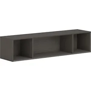 This wall-mounted storage is part of the HON Mod Desk Collection that delivers simplicity and adaptability to enhance your productivity. The contemporary design feels perfectly at home in either a private office or an open floor plan. The 60" wide Mod storage cabinet mounts on the wall to add storage space without sacrificing floor space. Its open interior offers several cubic feet of storage space. Optional doors (sold separately) can be added to increase privacy. Durable, Slate Teak laminate is scratch-resistant, spill-resistant and stain-resistant. Slate Teak matches other Mod elements (sold separately) so you can create an office suite to fit your needs.