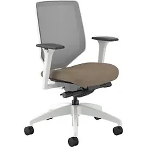 Solve is the single seating solution that helps a variety of users achieve optimal comfort. This Solve Mid-back Task Chair looks brilliant in Designer White and feels even better with its advanced synchro-tilt recline control that offers a full range of reclining positions. Arms adjust in height and width to put upper body support right where it's needed most. Other functions include pneumatic seat-height adjustment from 17-1/2" to 22-1/2" , 360-degree swivel, tilt tension and tilt lock. Four-way stretch mesh back flexes and stretches to gently cradle the spine. Waterfall seat edge encourages leg circulation. Mesh color is Fog while the seat fabric color is Putty. Designer White frame brings a unique look to the work space. Seat measures 19" wide x 19-1/4" deep. Back size is 18-1/4" wide x 21-1/2" back. Weight capacity is 300 lb.