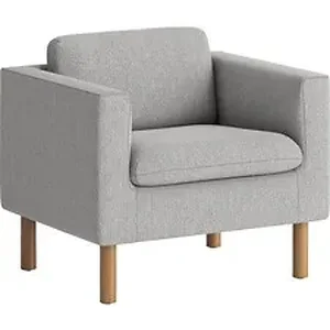 Introducing the HON Parkwyn Club Chair, a perfect blend of comfort and style. Measuring 33" x 26.75" x 29", this chair features a soft gray seat and back to provide a calming aesthetic. The solid oak base ensures durability and adds a touch of elegance to any space.
