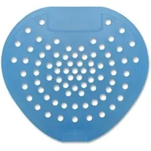 Vinyl urinal screens protect urinals from unpleasant smells and clogs. Flexible material can be used with all types of urinals. Odor-control technology helps eliminate odors for up to 30 days. Unique construction allows fluids to drain properly while preventing clogs. Included glove allows sanitary installation and removal.
