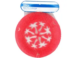 Each plate holder comes with three tabs that securely hold your paper plate in place, ensuring stability while you enjoy your meal. The set includes two holders in assorted colors, ideal for any occasion. With a diameter of 10.50 inches, they easily accommodate paper plates up to 9 inches in diameter. Packaged conveniently in a white mesh pouch with a header card, these plate holders are perfect for countertop displays.