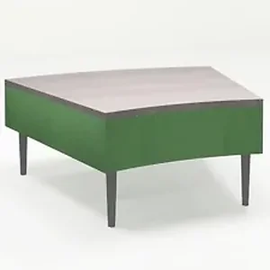 Complete your waiting area with this Eve 30-Degree Connecting/Freestanding Table. The sleek lines of the Eve Collection provide a contemporary solution to reception areas, waiting rooms, open-plan team areas, lobbies and training rooms. The Eve Occasional Table provides a durable yet minimalistic surface for laptop, computers, tablets and reading materials. The 1" thick top features thermally fused, Shoreline laminate that withstands years of use. The neutral Shoreline finish is fade-resistant, gray stain with a medium-gloss lacquer top coat. Upholstered sides over the hardwood frame offer an elegant accent and more separation between waiting guests. Anodized, brushed aluminum, 8" cylinder legs include adjustable leveling glides so the table offers reliable support for guests.