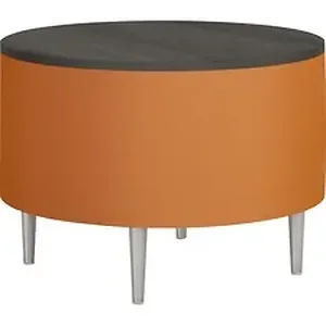 Round table features a thermally fused, laminate top to provide a durable surface that resists damage. Upholstered sides add unique style and texture to the table to create a more stylish look. Tapered legs with adjustable glides allow it to sit flat on the floor to prevent wobbling. Table is perfect for meeting rooms, lounges, open atrium areas and more.