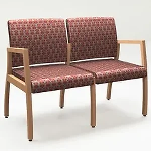 Axxess Ganged Guest Chairs with end arms offer versatile seating for your reception area. Steel cross-brace construction provides 350 lb. capacity per chair to accommodate most visitors. Efficient, thin profile of this two-chair seating option includes a solid wood frame with a Maple finish and wall-saver legs. Cushioned seats and backs allow easy cleanout and can be replaced. Tango Sangria upholstery is made of 100 percent polyester that is stain-repellent with no PFOA (perfluorooctanoic acid) or PFOS (perfluorochemicals). Adjustable glides provide easy stability on uneven surfaces. Frame components made of 1-1/4" square solid hardwood are double-doweled, glued and screwed. End arms are connected to the frame with countersunk machine screws. Seat pan on steel supports is made of commercial-grade, engineered hardwood. Back frames are connected with bolts and nuts. Each seat measures 20" wide x 19" deep x 18-1/2". Back size is 20" wide x 19" high. Arms height from seat is 8-1/2".