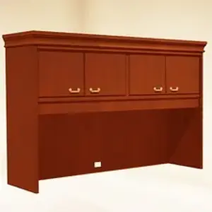 Overhead Storage Unit belongs to the HPFi Bedford Collection that brings old world excellence to the contemporary office by offering executive furnishings with the influence of generations. Classic design is achieved through break-front case design accented with base and picture-frame molding and double-rosette metal pulls. Thermally fused laminate surfaces feature solid hardwood edges that withstand everyday abuse. Lumber-banded, profiled edges and the dependable construction enhance any traditional decor. This hutch adds storage without expanding your work-space footprint, even leaving 25-1/4" high clearance on your 72" wide desktop surface. It includes two storage compartments with doors for privacy and one grommet in the lower back panel for easy cord management.