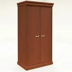 Wardrobe Storage Cabinet belongs to the HPFi Bedford Collection that brings old world excellence to the contemporary office by offering executive furnishings with the influence of generations. Classic design is achieved through crown molding on the front and sides as well as double-rosette metal pulls on the individually locking doors. Thermally fused laminate surfaces feature solid hardwood edges that withstand everyday abuse. Lumber-banded, profiled edges and the dependable construction enhance any traditional decor. This elegant wardrobe offers a coat rod on the left and four adjustable shelves that fit in the left or right compartment.