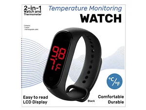 Bulk Buys HR455 2-in-1 Wristwatch Thermometer with Adjustable Band
