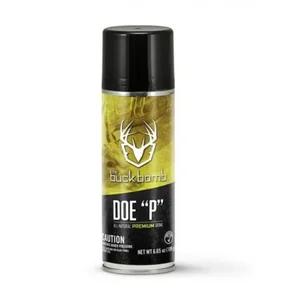 The Buck Bomb Synthetic Doe 'P' is designed to attract deer with its realistic scent of fresh urine from young does and fawns. Ideal for use in areas where natural scents are prohibited, this product serves as a reliable cover scent and attractant. Its convenient aerosol spray makes it easy to use while hunting, whether you're in a stand, blind, or on the move.