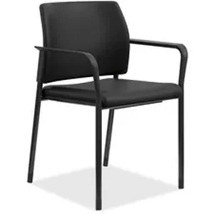 Hon Company HSGS6.F.B.UR10.BLCK HON Accommodate Guest Chair, Fixed Arms - Black Vinyl Seat - Black Fabric Back - Texture