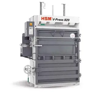 The HSM V-PRESS 820 is an efficient vertical baler designed to compress plastic foil and cardboard waste. Ideal for businesses with high volumes of waste, this baler helps in reducing storage space and facilitates easy transport of materials.