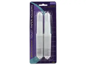 This 2-piece Replacement Toilet Paper Holders Set is designed for easy installation and durability. Featuring spring-loaded holders, they can accommodate most standard paper holders. Made of sturdy white plastic with metal springs, these holders ensure your toilet paper is readily accessible.