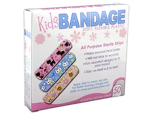 Soft and flexible, these bandages ensure a snug fit while allowing the skin to breathe. They come packaged in a vibrant box that not only showcases the fun designs but also includes instructions for use. Each bandage measures approximately 3/4" x 2 7/8", making them ideal for all kinds of minor injuries. The box itself measures approximately 4.375" x 0.875" x 4" and is perfectly shrink-wrapped for protection and convenience.
