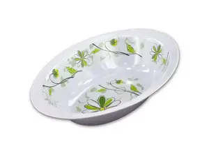 This elegant oval serving bowl is perfect for spring-themed celebrations and casual brunches. Crafted from durable plastic, its vibrant floral design adds a bright touch to any table setting. Ideal for serving side dishes such as stuffing, mashed potatoes, or small salads. Each bowl features a curved lip that helps prevent spills, making serving effortless. Measuring approximately 9 3/4" x 7" with a 2 3/4" depth, this bowl is both functional and stylish.