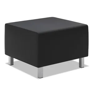 Hon Company HVL862.SB11 HVL862 Leather Ottoman - Black/Silver, 25" x 25" x 18"