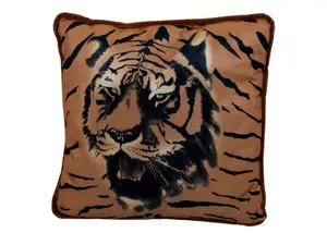 Enhance your living space with our Safari Style Tiger Accent Pillow. Perfect for animal lovers, this pillow boasts a vibrant tiger pattern that adds a playful touch to your home. Made with soft fabric, it provides both comfort and style, making it a great addition to any couch or bed.
