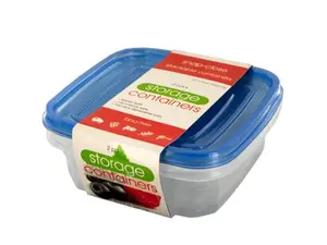 Seal in freshness and easily transport foods with this 2-piece Square Food Storage Container Set featuring durable, stackable plastic containers with snap-close lids. These are the perfect shape for storing sandwiches and other foods without taking up a lot of space in the fridge. Each container holds 22.3 fluid ounces. BPA free. Freezer, microwave and top rack dishwasher safe. Comes packaged with a wrap around.