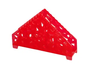 Organize your napkins stylishly with this Triangular Red Plastic Napkin Holder. Crafted from durable transparent red plastic, this holder features an elegant abstract cutout design that adds a modern touch to your dining area.