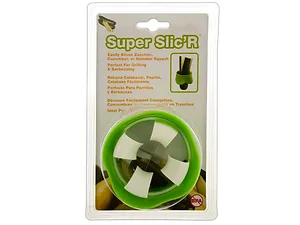 Effortlessly slice zucchini, cucumbers, and summer squash with the Pro Zucchini Slicer. This innovative kitchen tool features a robust design made from resilient plastic, complemented by sturdy metal blades for precision cutting.