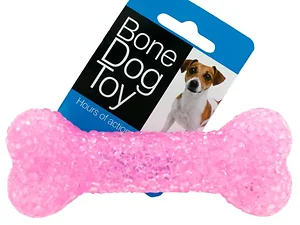 This durable Bone Dog Toy is perfect for fetching and gnawing, keeping your furry friend entertained for hours. It features a sturdy pebble plastic design with a jingly bell inside that adds extra fun during playtime. Measuring approximately 5 inches long and 2 inches wide, this toy is suitable for dogs of various sizes. Available in assorted colors, it comes packaged with a hang tag for easy display.