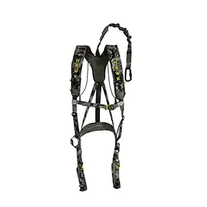 The HAWK ELEVATE LITE HUNTING HARNESS is engineered for ultimate comfort and concealment while you focus on the hunt. With its ultra-thin chassis and padded straps, this harness provides a snug and supportive fit. The harness features silent, quick-connect buckles for easy on and off, ensuring you stay stealthy during your adventures. Thanks to the memory foam fit technology, the harness maintains its shape, providing consistent support. The Chaos Black camo helps you blend seamlessly into your surroundings, making it easier to stay undetected. It's also designed with elastic binocular cables and flexible elements that enhance your mobility and accessibility.