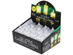 Each candle features an exquisite design with realistic wax dripping details and a flickering effect that enhances its authenticity. With an on/off switch conveniently located at the bottom and batteries included, these candles are ready to light up your space right out of the box. The countertop display contains 12 candles, making it an excellent choice for retailers or anyone looking to brighten up their home.