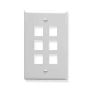International Connectors And Cable Corp. IC107F06WH 6-Port Flat Face Plate for 1-Gang Wall Enclosure - White