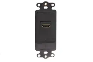 Black HDMI Decora Insert with Mounting Screws24k Gold Plated HDMI connectors99.99% Oxygen Free Copper conductors with gold platingCopper Foil shielding for rejection of EMI and RFIDesigned to distribute high quality video, audio and other communication needs with contemporary styling for commercial or residential applications.Fits standard NEMA electrical boxesRugged and durable constructionDesigned for a consistent look with the standard decorator style faceplatesAccommodates a wide variety of easy to snap-in modules, providing configuration flexibilityHDMI (High Definition Multimedia Interface) connectors are ideal for high-definition video and audio devices.HDMI (High Definition Multimedia Interface) are certified and support standard, enhanced and high-definition video (up to 1080p) along with 8 channels of digital audio on a single cableUL Listed