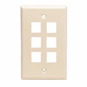 - Color: almond- 6 ports- Single gang- Accepts standard keystone modules- Screws included- Dimensions: 2 3/4' x 4 1/2'