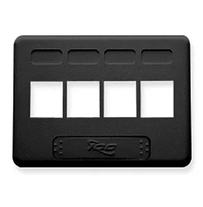 - Black 4 Port NEMA Keystone Furniture Faceplate- 1-piece design- Accepts four (4) modular connectors- For standard NEMA furniture cutout sizes- Provides connectivity at the workstation creating a modern appearance with an easy to use identification scheme in modular furniture environments- Designed to support the distribution of voice, data, and other communication needs to the work area for commercial or residential applications- Ideal for use in high density applications with more connectivity in less space- NEMA opening with snap-in design seamlessly integrates into most popular modular furniture systems; including Herman Miller, Knoll, Hayworth, Steelcase, and many others- Rugged and durable construction- Accommodates a wide variety of easy to snap-in modules, providing configuration flexibility
