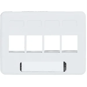 - White 4 Port Keystone Furniture Faceplate- 1-piece design- Accepts four (4) modular connectors- For standard NEMA furniture cutout sizes- Provides connectivity at the workstation creating a modern appearance with an easy to use identification scheme in modular furniture environments- Designed to support the distribution of voice, data, and other communication needs to the work area for commercial or residential applications- Ideal for use in high density applications with more connectivity in less space- NEMA opening with snap-in design seamlessly integrates into most popular modular furniture systems; including Herman Miller, Knoll, Hayworth, Steelcase, and many others- Rugged and durable construction- Accommodates a wide variety of easy to snap-in modules, providing configuration flexibility