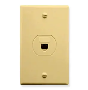 This ivory designer wall plate is configured to fit standard single gang outlet boxes. It is designed for all voice connectivity to the work area, suitable for both commercial and residential applications.