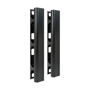 - Two 40-inch channel stacked, 80-inch vertical pathway, perfect for a 7ft distribution rack.- Steel construction with a black, textured and powder-coated finish.- Mounting brackets swivel out on the left and right.- Front latches swivel open providing a large feed-through opening.- Cable tie points are designed within the channel.- Snap-on covers are included to conceal cables.- Works with 2-post and 4-post distribution racks.- Reduced height lowers shipping cost and makes it easier to handle.- Ships in two-pack, 6-inch W, 6-inch W, 40-inch L.