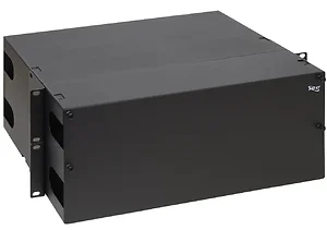 The 12-Panel Fiber Optic Rack Mount Enclosure is designed for the organization and management of fiber optic connections in a secure manner. This durable enclosure features a slide-out tray with both front and rear metal covers, ensuring easy access and cable management.