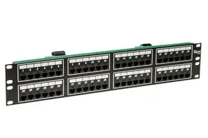 48 Port 8P4C Rack Mount Telco Patch Panel Rack mounted 8-position 4-conductor Telco patch panel for voice connectivity applicationsIntegrated with 4 male 50-pin telco connectorDesigned to fit all standard 19? racks and cabinets2 rack mount space (RMS)Used with standard telco line cordsUL listed