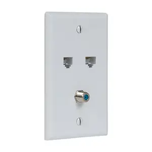 RJ-11 6P6C, RJ-45 CAT 5E, and F-Type Wall Plate WhiteProvides an integrated one-piece solution for CAT 5e, data, and audio applicationsIDC (insulation displacement connection) contacts are designed for repeated 110 termination providing long lasting performance and reliabilityGold plated F-type connector for improved performance with superior signal quality with minimal noiseQuick and easy installation with integrated color coded wiring diagrams requiring no additional assemblyEmbossed port labels eliminate the need for additional labeling or identification creating a cleaner appearanceRugged and durable constructionIncludes IDC caps to ensure the terminated wiring is secure