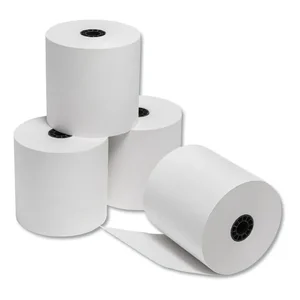 Teller/financial paper rolls are great for teller validation and check printers found in banks, restaurants and retail. They deliver crisp, clear images on the one-ply bond roll. Warning stripe at the end of the roll alerts you when you need to replace it before you run out and inconvenience a customer. The TMP process does not bleach the pulp to make it white so this bond paper is considered more environmentally friendly.