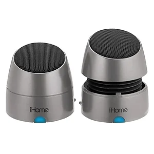 The iHome iHM76 2-Piece Rechargeable Mini Speakers deliver impressive sound from a compact design. Perfect for on-the-go audio, these mini speakers feature a magnetic base for easy transport and can connect to various devices via a USB power source. Whether you're using a laptop, smartphone, or MP3 player, enjoy surprising bass response and volume that fits comfortably in your palm.