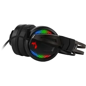 1. Solid Stainless Steel Headband 2. Swivel Ear Cups for Easy Carry 3. Replaceable Ear Pads 4. Certified Hi-Res 50mm Driver Units with Virtual 7.1 Surround Sound 5. RGB LED with Mystic Light RGB 6. Retractable Microphone Light up the battlefield MSI Mystic Light RGB