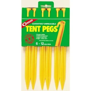 Ensure your tent stays securely anchored in any outdoor condition with Coghlans 12-inch Plastic Tent Pegs. Crafted from durable polypropylene, these pegs are designed to withstand the rigors of camping while providing excellent visibility on the ground. Perfect for securing tents, tarps, and other outdoor gear, this 6-pack ensures you'll have plenty of pegs for your next adventure.