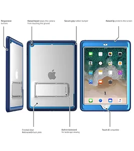 Protect your iPad 9.7 with this stylish clear case featuring a vibrant blue trim. Designed for durability and easy access to all ports and buttons, this case provides a perfect blend of functionality and aesthetics.
