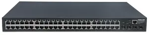 48 10/100/1000 Mbps auto-sensing ports automatically detect optimal network speedsFour small form-factor pluggable GBIC module slots (SFP)All RJ45 ports with Auto-MDIX and NWay auto-negotiation supportComplies with the IEEE 802.3az (Energy Efficient Ethernet EEE) specificationSNMP Management and Remote Monitoring (RMON)SNMP V1, V2C, V3 with RMON groups 1, 2, 3 & 9IPv4/v6 dual protocolSupports VLAN (tag-based and port-based)Provides IEEE 802.1x port-based securitySupports link aggregation (trunking)Supports bandwidth control per portSupports port mirroringSupports two types of QoS: port-based and DSCPBroadcast storm control with multicast packet rate settingsSupports 8k MAC address entriesSupports jumbo frames up to 9 kBytesSupports Rapid Spanning Tree/Spanning Tree protocolStore and forward switching architectureFull/half duplex operationConfiguration via Web browser, Telnet or SSHIEEE 802.3x flow control for full duplexLEDs for power, link/activity, connection speedFanless design ideal for silent operationThree-Year Warranty