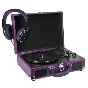 This Innovative Technology turntable is a sure hit for any occasion! This 3-speed turntable not only plays your favorite records, but its portable suitcase design with carry handle and built-in stereo speakers allow you to carry your tunes wherever you may go. It also includes a matching set of colored coordinated headphones for private listening!