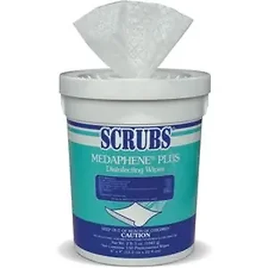 SCRUBS Medaphene Plus Disinfecting Wipes are an effective, one-step germ-killing cleaner, disinfectant and deodorizer. These wipes kill similar viruses so they can be used against SARS-CoV-2 on hard, nonporous surfaces when used as directed. Textured surface works quickly to loosen contaminants while the rest of the wipe absorb them to leave surfaces clean and disinfected. The pre-moistened wipes mean no spraying and no runoff. They come in a portable canister with easy dispensing so they are easy to use on toilet seat, phones, light switches, faucet handles, doorknobs, keyboards, desk, chairs, showers and more. They can be used on glazed tile, acrylic, Formica, glazed porcelain, metal, finished woodwork, stainless steel and sealed granite.