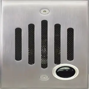 The Intercom Unit without a camera features a durable construction with a 1/4-inch thick brass plate, designed for reliable performance in residential settings. It integrates a weather-resistant speaker and microphone, along with a doorbell button for convenient access control.