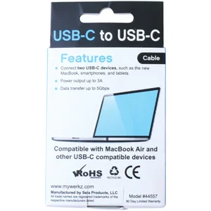 The iwerkz USB-C Male to Male Cable is designed for high-speed data transfer and charging. Measuring 3.28 feet in length, this cable is perfect for connecting your USB-C devices, ensuring fast and reliable performance.