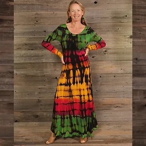Jayli Imports JD404WDress:JD404-multi-S Women's Tie Dye Corset Maxi Dress - Long Sleeve